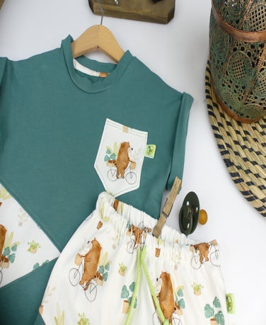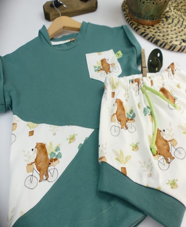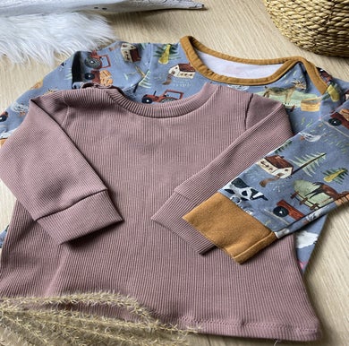 Das Dolman Tee ist ein oversize geschnittenes T-shirt. Die umgeschlagenen Ärmel und der runde Saumabschluss sind ein echter Hingucker. Auf Wunsch kann ein dreieckiger oder Runder Ausschnitt mit einem zweiten Stoff eingearbeitet werden.