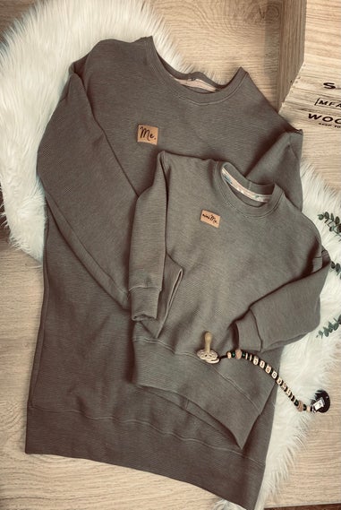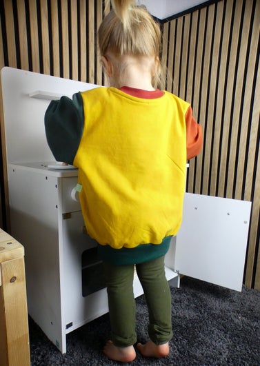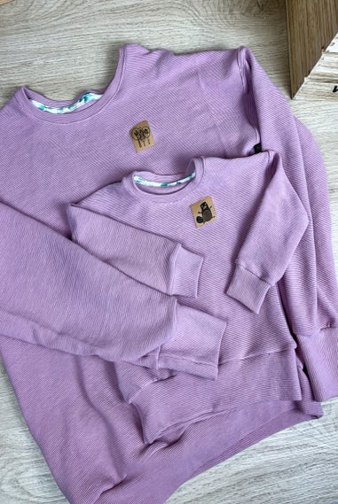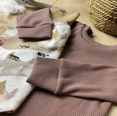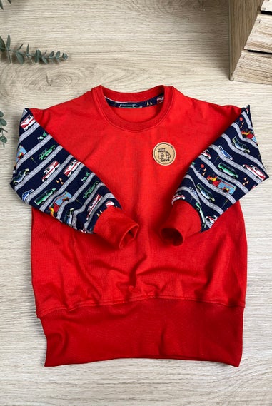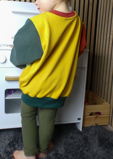 Der Oversize Sweater ist verwandt mit dem Oversize T-shirt. Der schnitt fällt locker. Die Schulternähte fallen über die Schultern. Armausschnitt, Ärmel und der untere Saum sind mit einem Bündchen versehen. Stoffart frei und individuell wählbar.