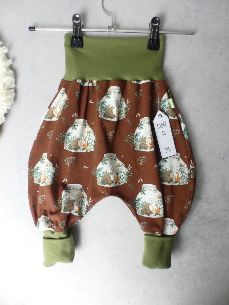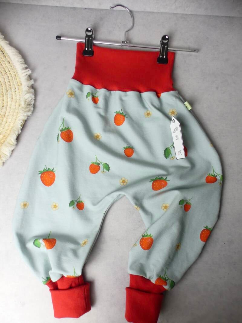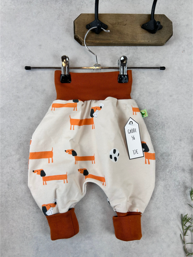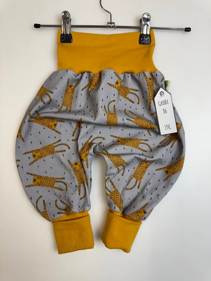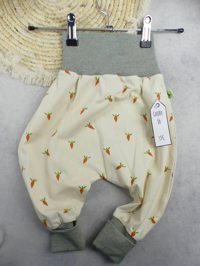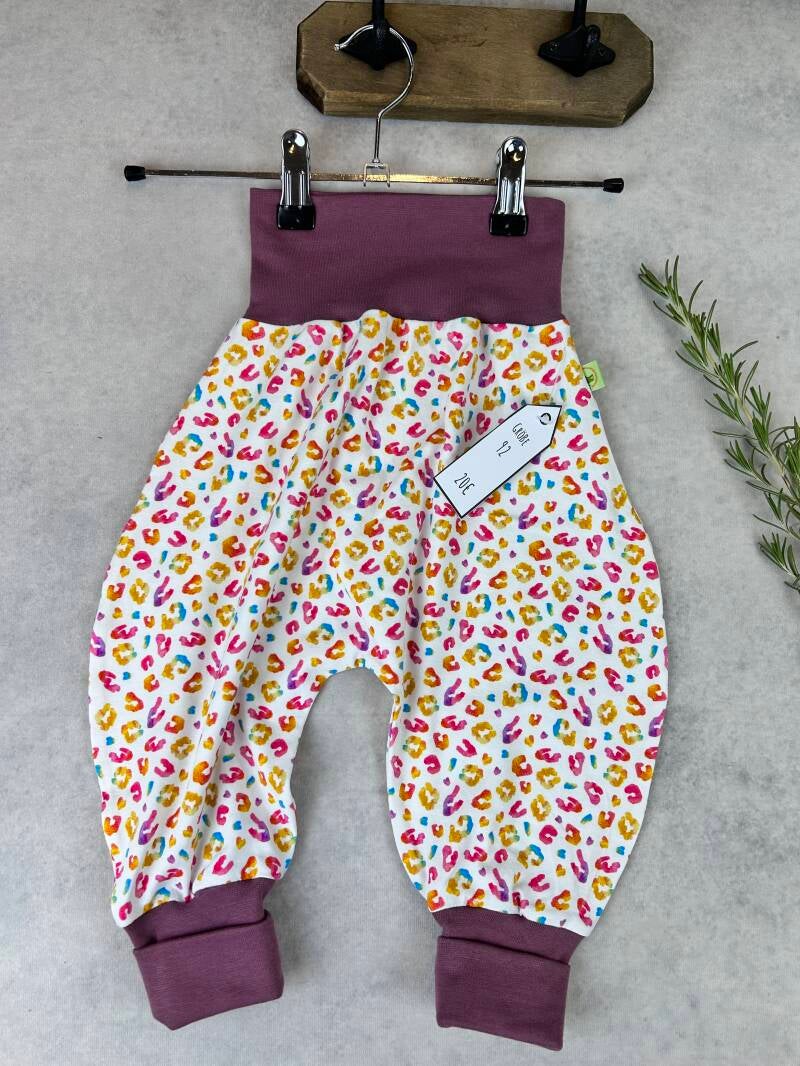 Die Pumphose ist eine locker und weit geschnittene Stoffhose. Sie lässt Deinem Kind die nötige Bewegungsfreiheit die es braucht und bietet genug Platz, auch für große Stoffwindelpopos. Mit den extra langen Bein- und dem hohen Bauchbündchen, wächst die Hose mindestens eine Größe mit.