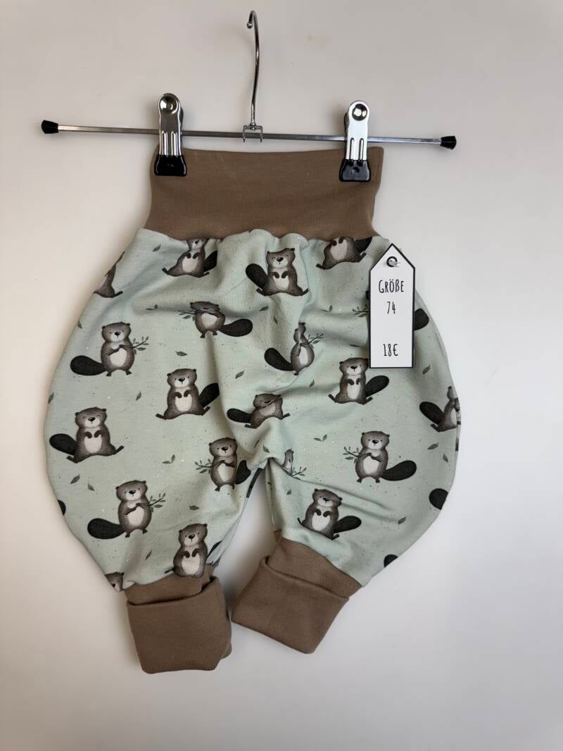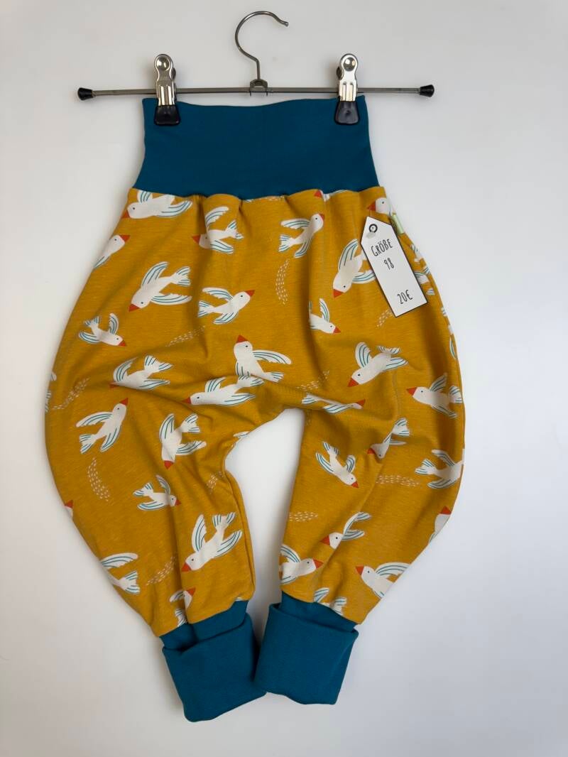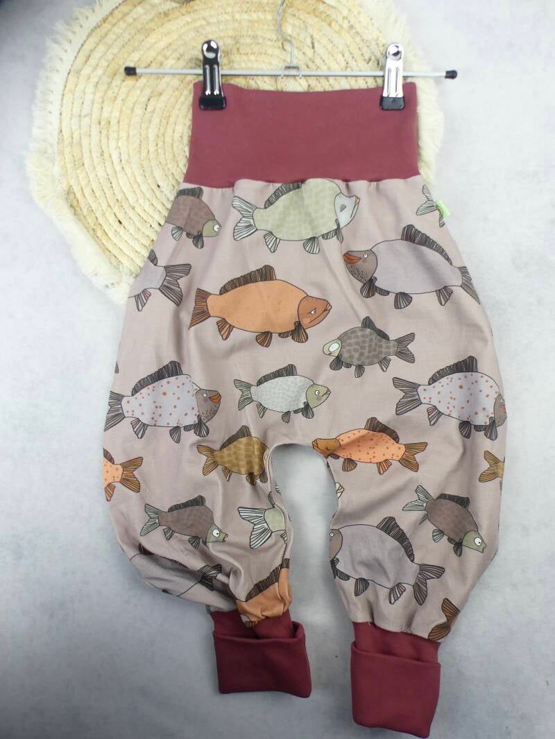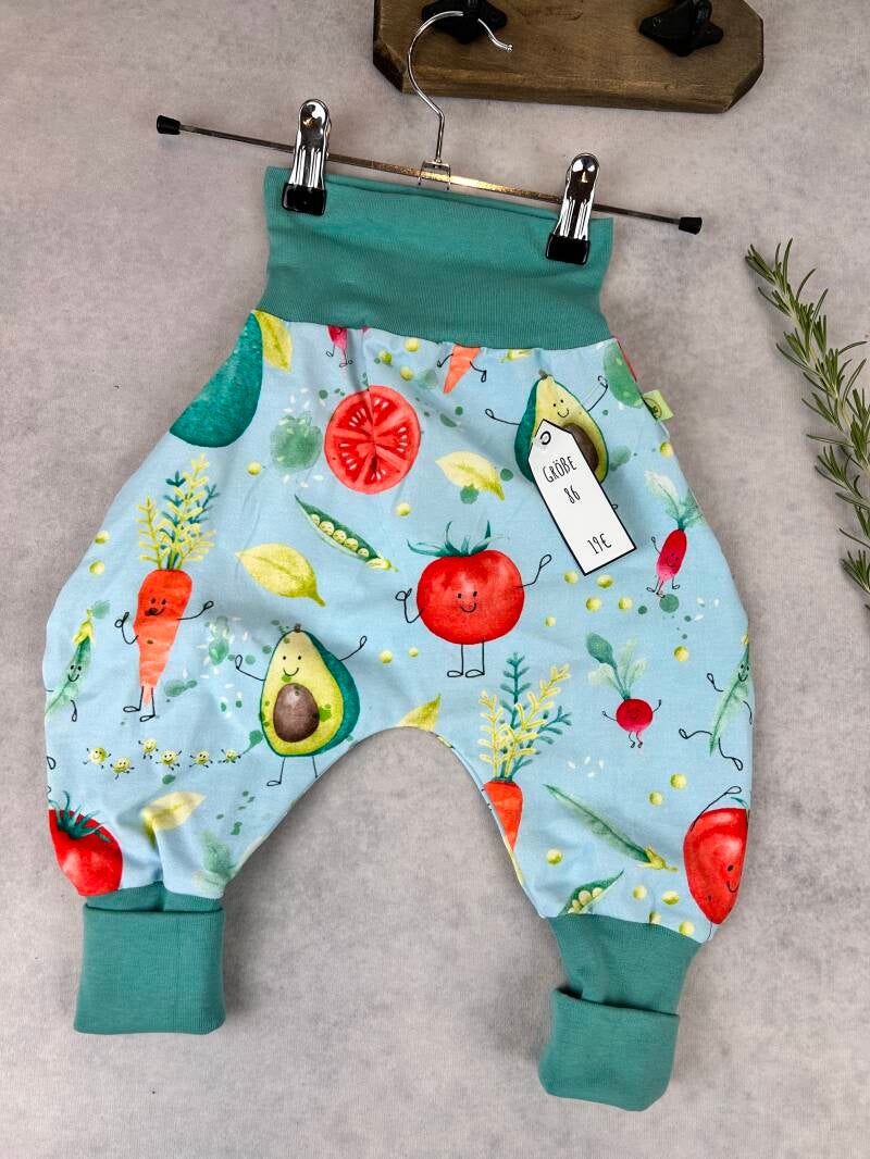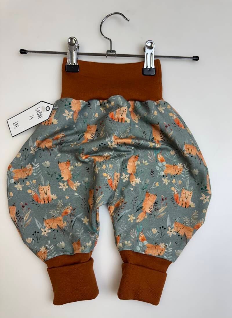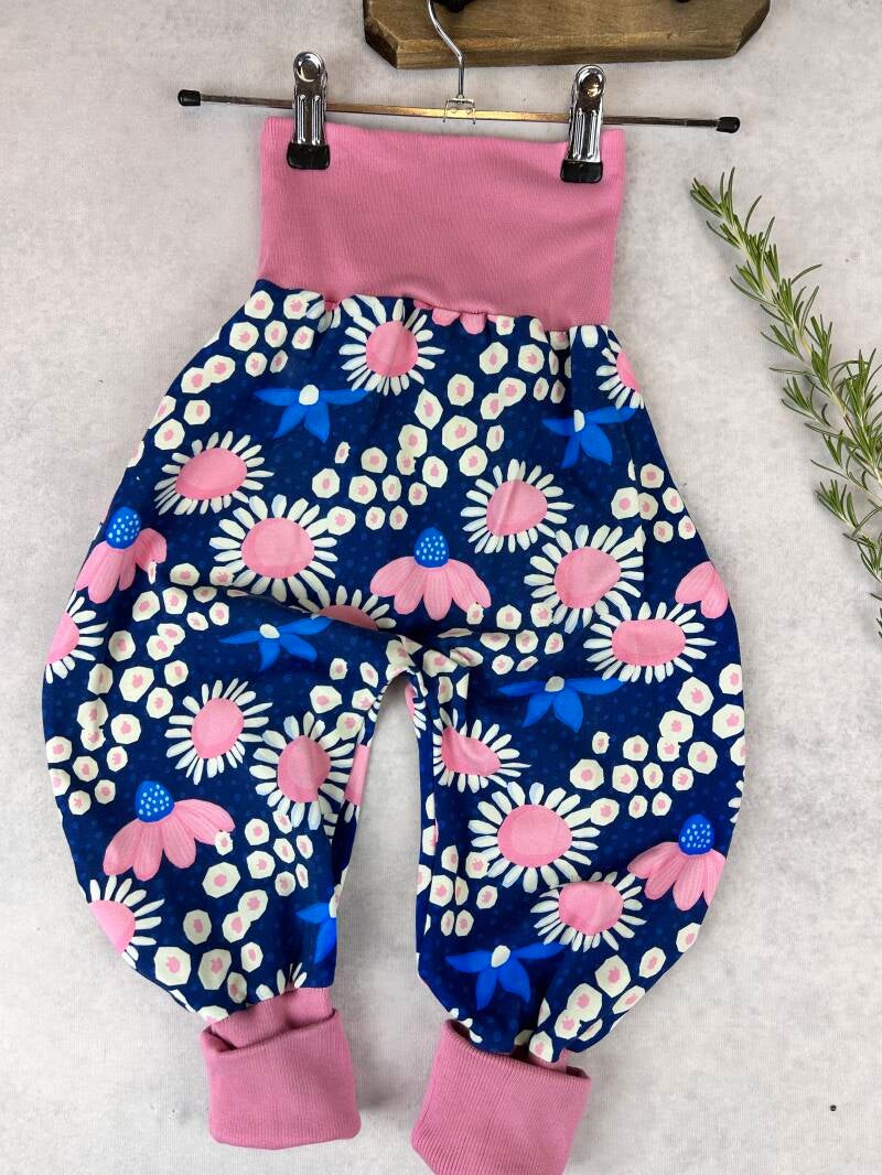 Die Pumphose ist eine locker und weit geschnittene Stoffhose. Sie lässt Deinem Kind die nötige Bewegungsfreiheit die es braucht und bietet genug Platz, auch für große Stoffwindelpopos. Mit den extra langen Bein- und dem hohen Bauchbündchen, wächst die Hose mindestens eine Größe mit.