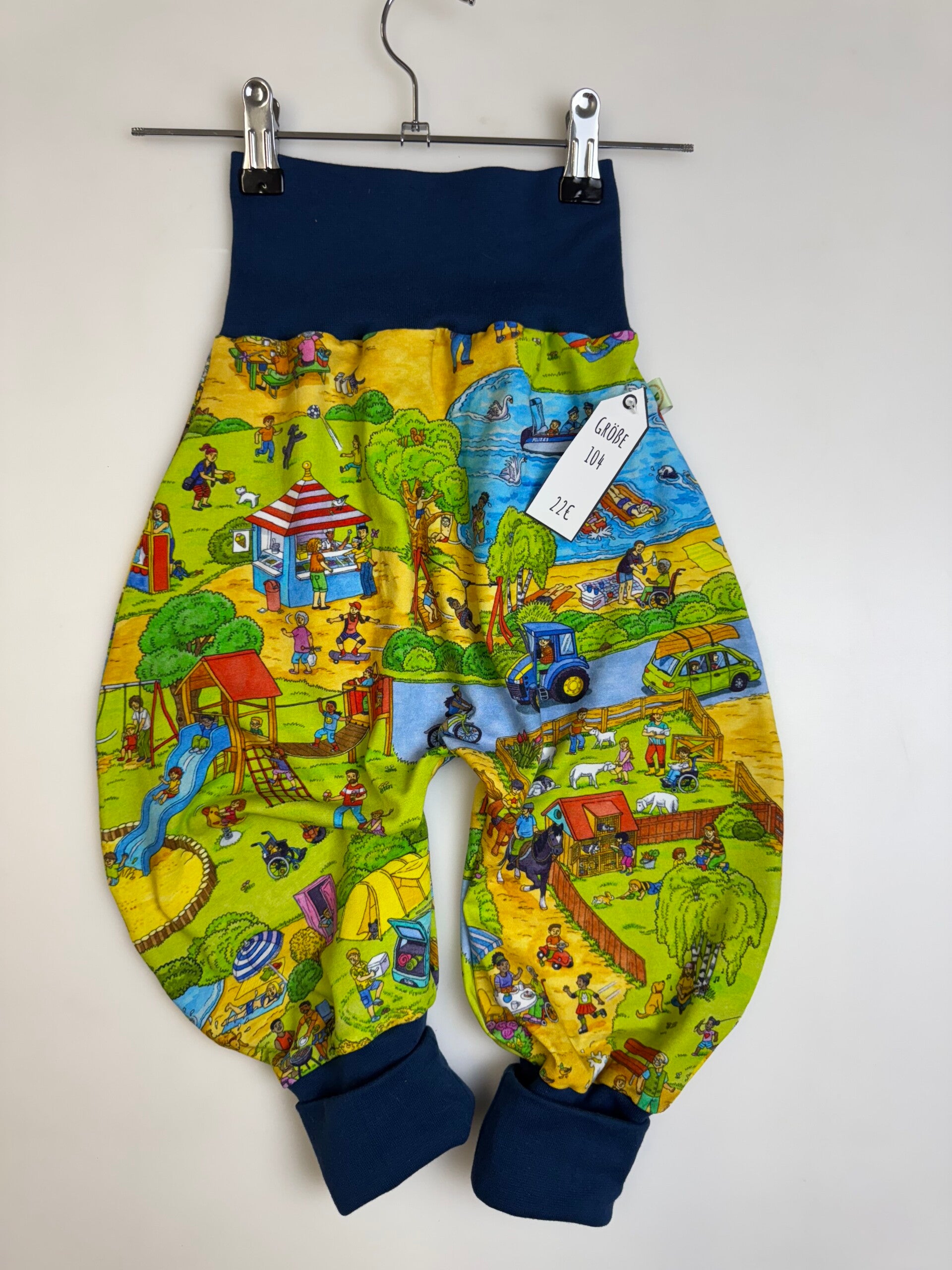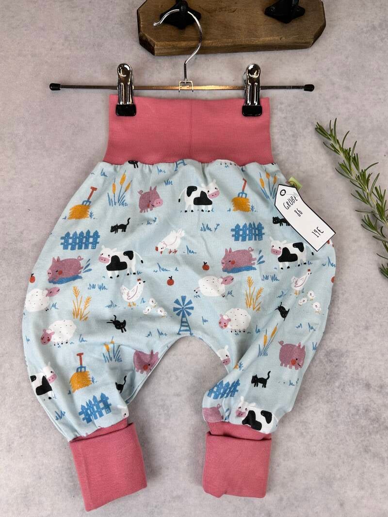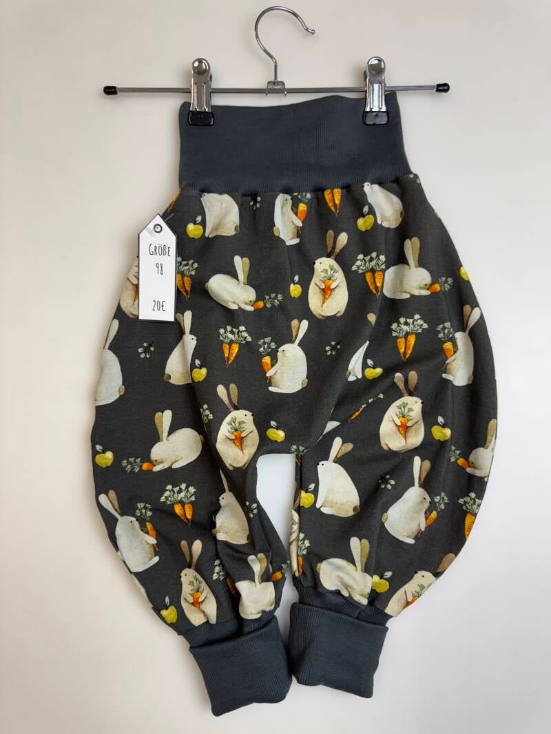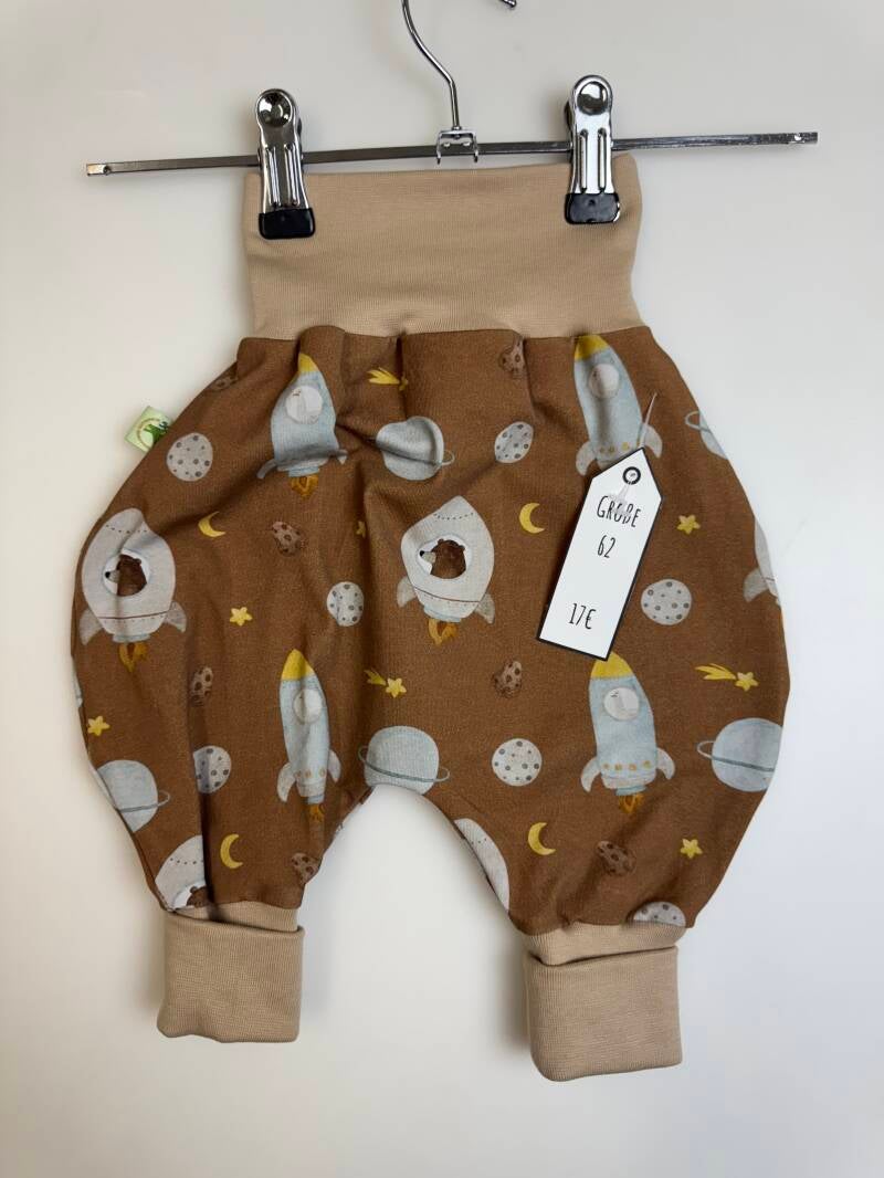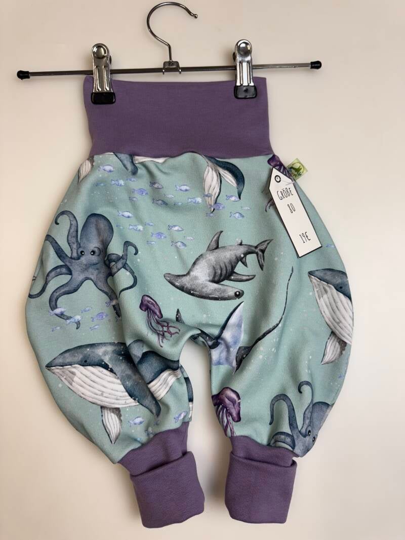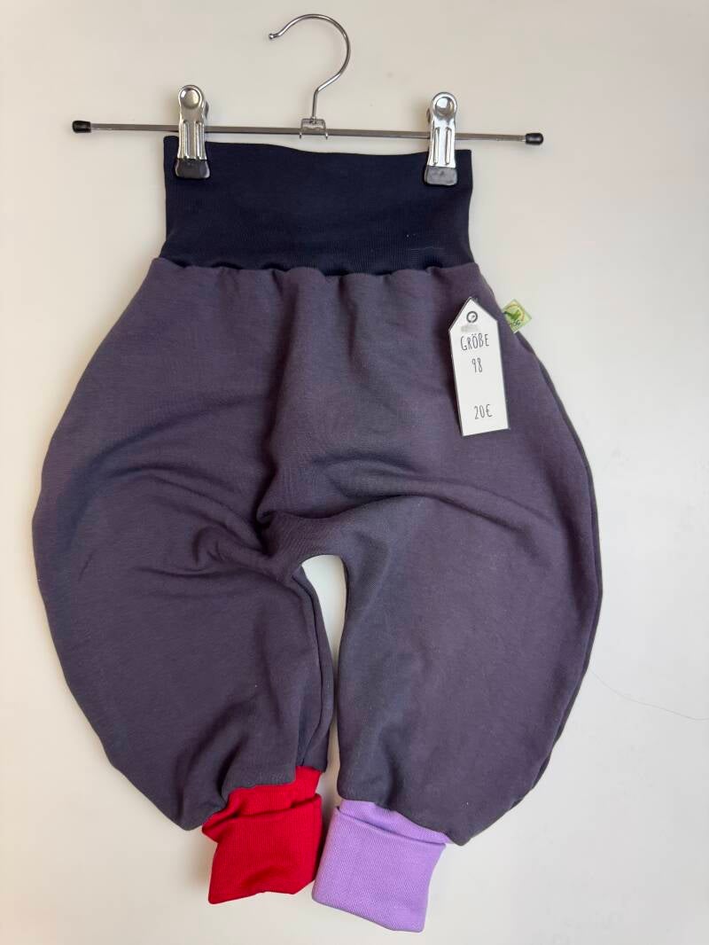 Die Pumphose ist eine locker und weit geschnittene Stoffhose. Sie lässt Deinem Kind die nötige Bewegungsfreiheit die es braucht und bietet genug Platz, auch für große Stoffwindelpopos. Mit den extra langen Bein- und dem hohen Bauchbündchen, wächst die Hose mindestens eine Größe mit.